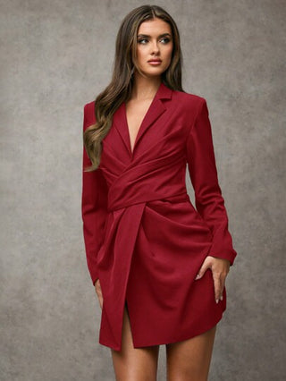 BAE ملابس النساء الصيفية بسيطة بلون سادة، بياقة هراوي، كم طويل، بدلة، للخريف، ملابس النساء للخريف، فساتين النساء للخريف، ملابس المكتب للنساء باللون الرمادي، ملابس الشتاء للنساء، فساتين العمل للنساء، سترات النساء الأعمال