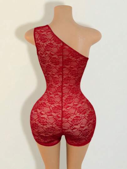 BamGleam ملابس نسائية جذابة للربيع والصيف ، جمبسوت ضيقة أحادية الكتف مزينة بالشبك والشفافية لمهرجانات الموسيقى