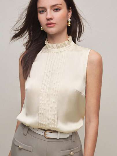 BizChic خزان نسائي مكشكش بماعز أكورديون بدون أكمام، ربيعي/صيفي