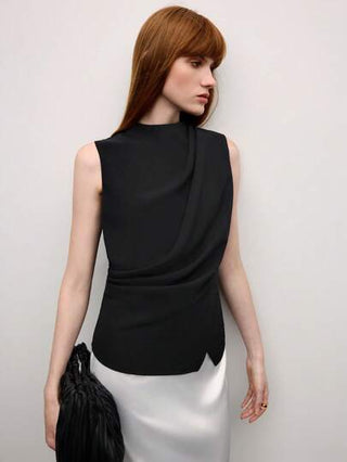 BizChic قميص أنيق بياقة محاكاة السترة بدون أكمام للنساء للاستخدام اليومي/العمل /المواعدة/التنقل/العطلات، لفصلي الربيع والصيف باللون الأسود