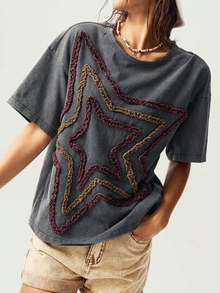 Bohemela تي شيرت رقيق فضفاض للنساء بأكمام قصيرة وياقة دائرية ، بتصميم بوهيمي عصري بلون أحادي ومطفي