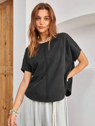 Bohemela تي شيرت نسائي ذو حافة مقوسة بلون سادة