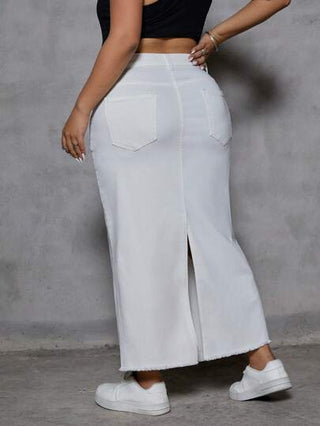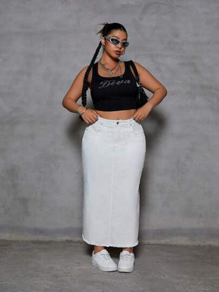 Breezaya تنورة جينز طويلة صلبة اللون مفتلة الحافة بمقاسات كبيرة، مناسبة للخريف