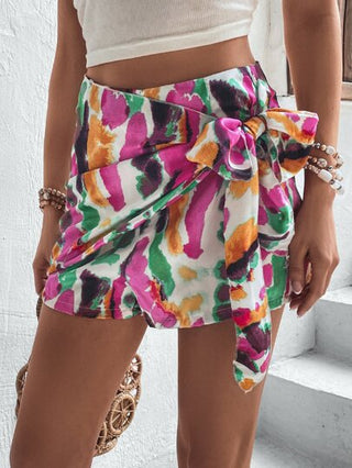 Breezaya تنورة طباعة شامل عقدة جانبي