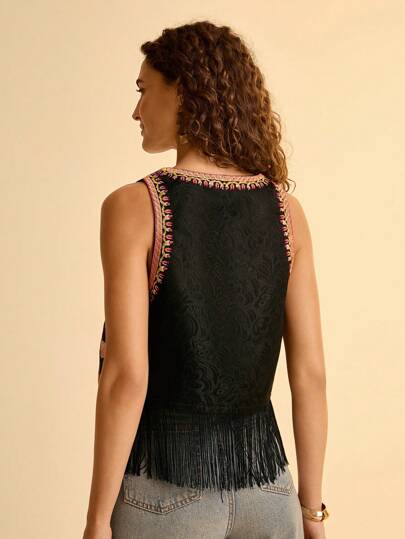 CAJUNI سترة قصيرة بدون أكمام مطرزة بالزهور للنساء، صيفية عادية مناسبة للشاطئ والعطلات