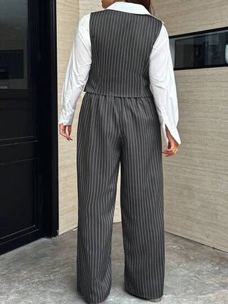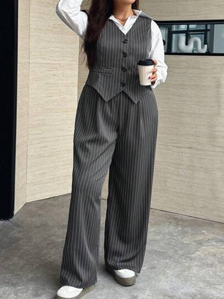 Calvaya بدلة ذات كتف وبنطال مخطط مع أزرار أمامية, موديل كبير الحجم، خريفي