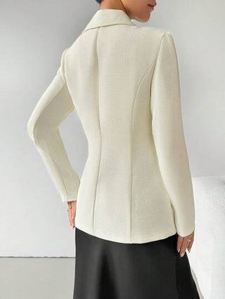 Calvaya بدلة رسمية نسائية أنيقة طويلة الأكمام ذات لون سادة بياقة مسطحة، أزرار في الأمام، مناسبة لارتداء في المكتب والجلسات الرسمية