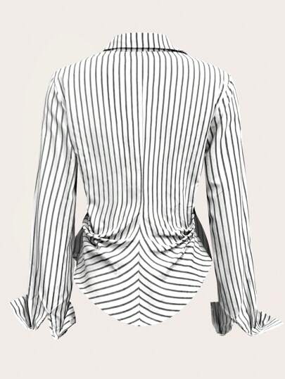 Calvaya بلوزة نسائية بأكمام طويلة مخطط لتنحيف الخصر على شكل غير متماثل