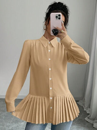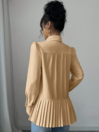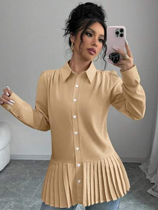 Calvaya بلوزة نسائية بياقة منقلبة، تفاصيل منقطة، كُمّ طويل
