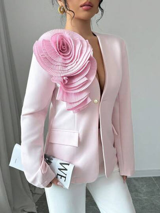 Calvaya بليزر نسائي بياقة على شكل حرف V مزين بزخارف زهرية ثلاثية الأبعاد، قصة ضيقة، موضة أنيقة لارتداء المكتب، إصدار جديد لخريف 2024