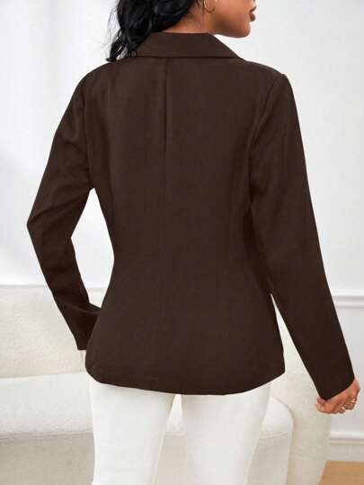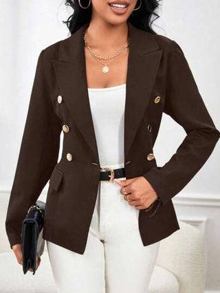 Calvaya جاكيت رياضية نسائية بصف أزرار مزدوج ذات لون أحادي، بتصميم أنيق، موسم الخريف