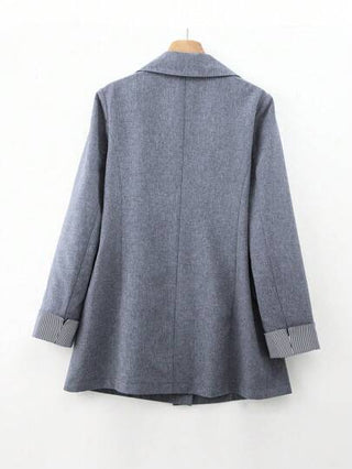 Calvaya جاكيت كاجوال للنساء مزدوجة الصدر بنقوش متباينة رمادية اللون