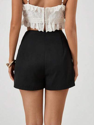 Calvaya سروال قصير نسائي أسود ذو تصميم فراشة مريح وعملي، مناسب للربيع والصيف