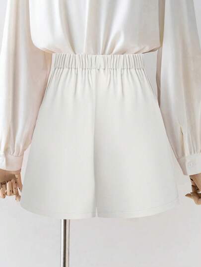 Calvaya شورتات نسائية مزين بكسرات من قماش منسوج مع سوستة أمامية وخصر مطاطي لتنحيف الخصر، قصة A-line متوسطة الخصر. شورتات متعددة الاستخدامات، مريحة وأنيقة للارتداء اليومي