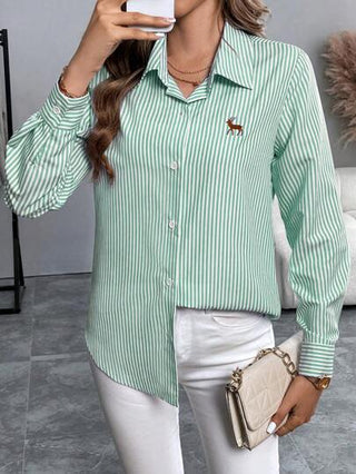 Calvaya قميص كاجوال أزرار أكمام طويلة ياقة بولو مخطط مطرز