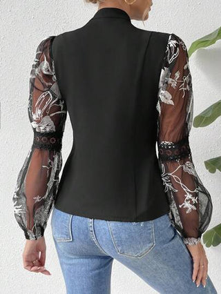 Calvaya قميص نمط زهري شبكة متباينة كم Virago