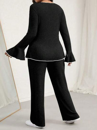 Calvaya مجموعة من قطعتين لكبار الحجم من النساء، سترة مخططة مزينة بالفيونكة وبنطلون