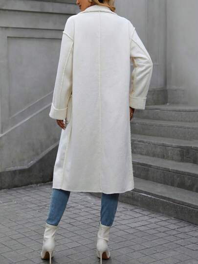Calvaya معطف طويل من الجلد المخملي الزائف بياقة عادية وأكمام طويلة وأزرار مزدوجة للنساء، خريف وشتاء