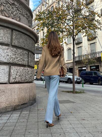 Calvaya معطف نسائي أنيق بلون سادة بياقة مستديرة، ذو أزرار مزدوجة، جيوب مزيفة وأكمام طويلة، بقصة منتظمة، للخريف والشتاء