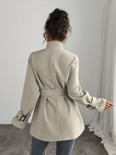 Calvaya معطف نسائي عصري متماسك مع قصة رقبة غير متناظرة وخصر فضفاض متناسب، قابل للاستخدام في فصلي الخريف والشتاء