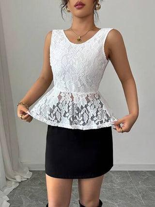 Calvaya ملابس علوية أنيق محبوك للنساء ذو رقبة دمية وربط خلفي مرصع بالدانتيل، بدون أكمام، مناسب للربيع والصيف