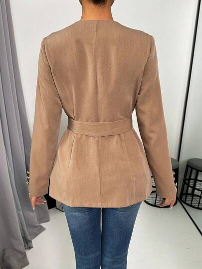 Calvaya بليزر أنيق بياقة مربعة وأكمام طويلة وأزرار واحدة، للنساء، خريفي