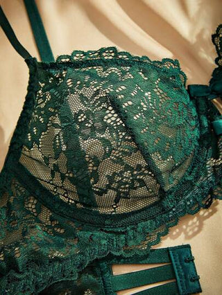 Charlaine Charlaine طقم ملابس داخلية نسائي بنقشة الدانتيل السادة والشفافة يشمل سرير وسروال