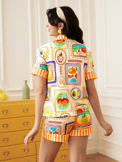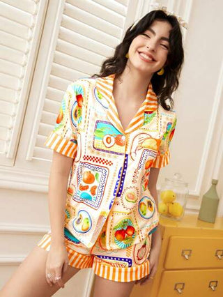 Chillnights طقم بيجاما للنساء به قصيرة الأكمام وشورت بطبعات فاكهة