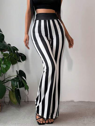 Chiquease بنطلون بطراز محاك بتأثير مخطط أبيض وأسود للخصر