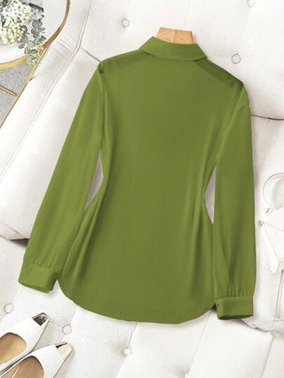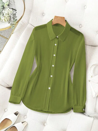 Chiquease قميص أساسي بتصميم بسيط لون أحادي شفاف مع طوقه منقلب