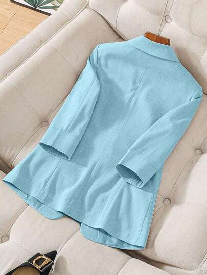 Clasi البليزر الكتان ياقة صدرية أكمام ٣/٤، مع خصر مربوط، للارتداء في المكتب