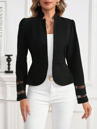 Clasi السترة الأنيقة ذات الخصر المربوط بالشدة مع أكمام بفقاعات وأساور من الشبك المدمج ذات اللون البلون, للربيع والخريف