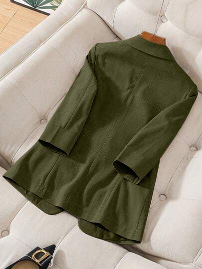 Clasi بلايزر كاجوال من الكتان مع يقين مشدود على الخصر وأكمام ربع