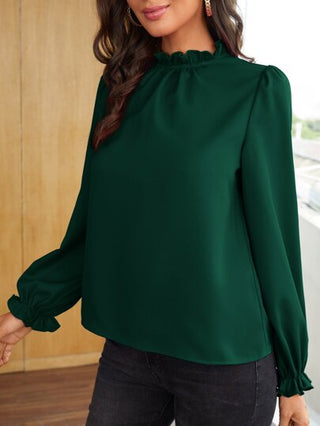 Clasi بلايز نسائية الزر كشكش الثوب الدانتيل منتفض