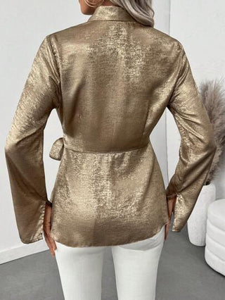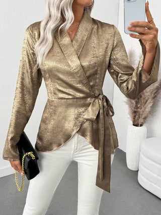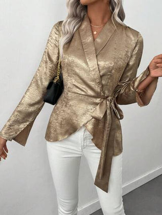 Clasi بلوزة أنثوية طويلة الأكمام مكشكشة وشديدة الخصر للسهرات وأعياد رأس السنة