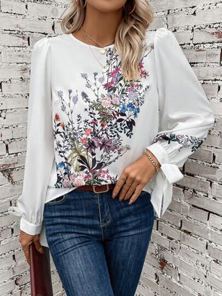 Clasi بلوزة طباعة الأزهار اكمام منتفخة