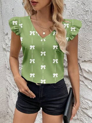 Clasi بلوزة كاجوال نسائية بياقة V وأكمام قصيرة وعقدة بشكل فراشة، مناسبة للصيف