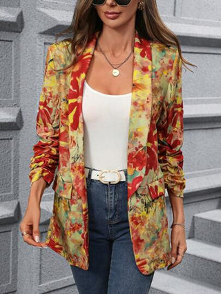 Clasi بليزر أنيق للنساء مطبوع بطباعة مائية زهرية مع جيب وياقة منقلبة