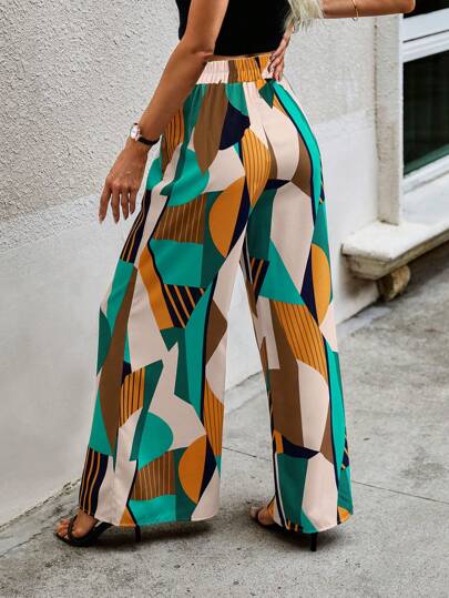 Clasi بنطلون بساق واسع خصر عالي طباعة هندسية