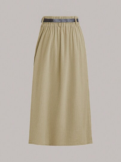 Clasi تنورة أنبوبة من الكوردوروي بقصة A-line مع شق للنساء، لون أحادي، للخريف