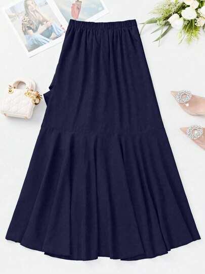 Clasi تنورة نسائية ماكسي ملفوفة بكشكشة ذات لون أحادي، ملابس نسائية