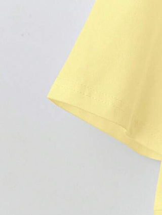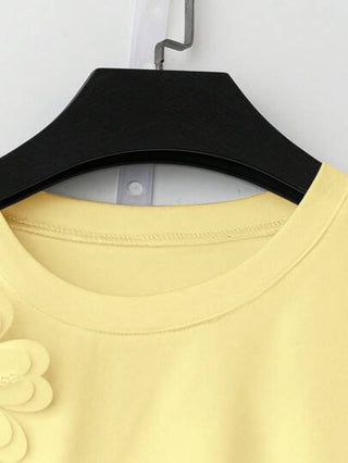 Clasi تي شيرت أنيق للنساء بأكمام قصيرة مع زهرة ثلاثية الأبعاد وحافة مطرزة