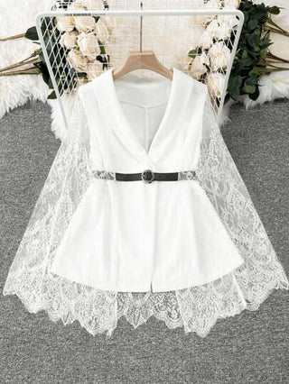 Clasi جاكيت بليزر بقماش الدانتيل للنساء ذوات المقاسات الكبيرة بتفاصيل منقسمة في الأكمام، تناسب فصل الربيع/الصيف