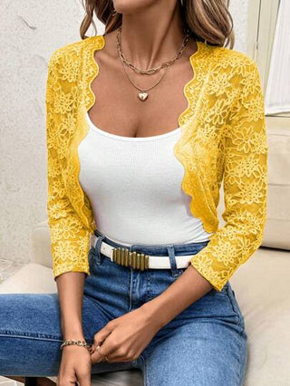 Clasi جاكيت سادة تقليدي من الدانتيل الأسود، بتصميم عصري وبسيط، مناسب للصيف