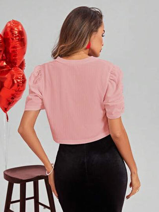 Clasi جاكيت قصيرة المكونة من أكمام الفقاعات اللون موحد اللون للنساء ذات الجيب المفتوح للصيف
