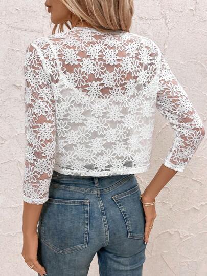 Clasi جاكيت منتظمة للنساء بأكمام ثلاثة أرباع وفتحة أمامية من الدانتيل للربيع والخريف