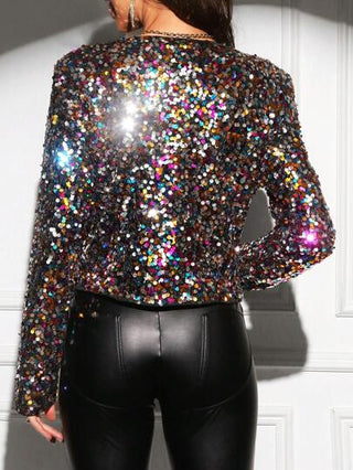 Clasi جاكيت نسائي بدون طوق مرصع بترتر ملون