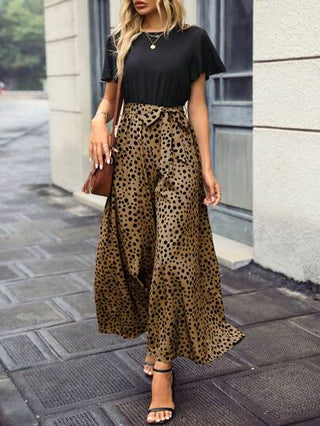 Clasi جمبسوت قصيرة بأكمام قصيرة وترتر فضفاضة بطبعة لونية مختلطة وياقة مستديرة للنساء في الصيف
