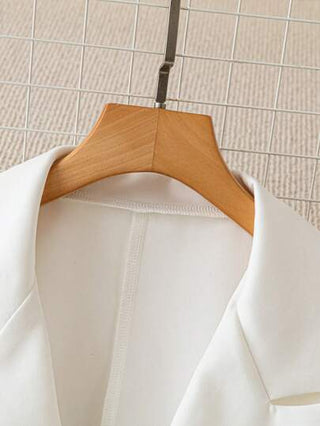 Clasi سترة طويلة الأكمام بأسلوب كاجوال/مكتبي، من القماش الأحادي اللون ومزينة بإبزيم معدني