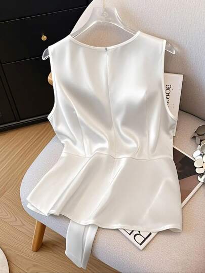 Clasi فاخر للسيدات أنيق بأكمام بلا أكمام رقبة على شكل V خصر ملتو مزين بعقدة أنيقة أحادي اللون بسيط أنيق علوي صيفي ربيعي